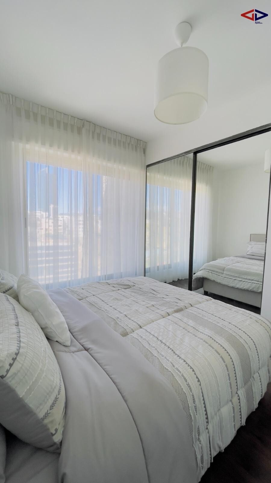 The apartment is located on the fourth floor and features three well-sized bedrooms designed to provide privacy and comfort, along with two modern bathrooms finished to a high standard. The property includes a functional kitchen with ample space for daily use and a bright living area that creates a welcoming and relaxing atmosphere.