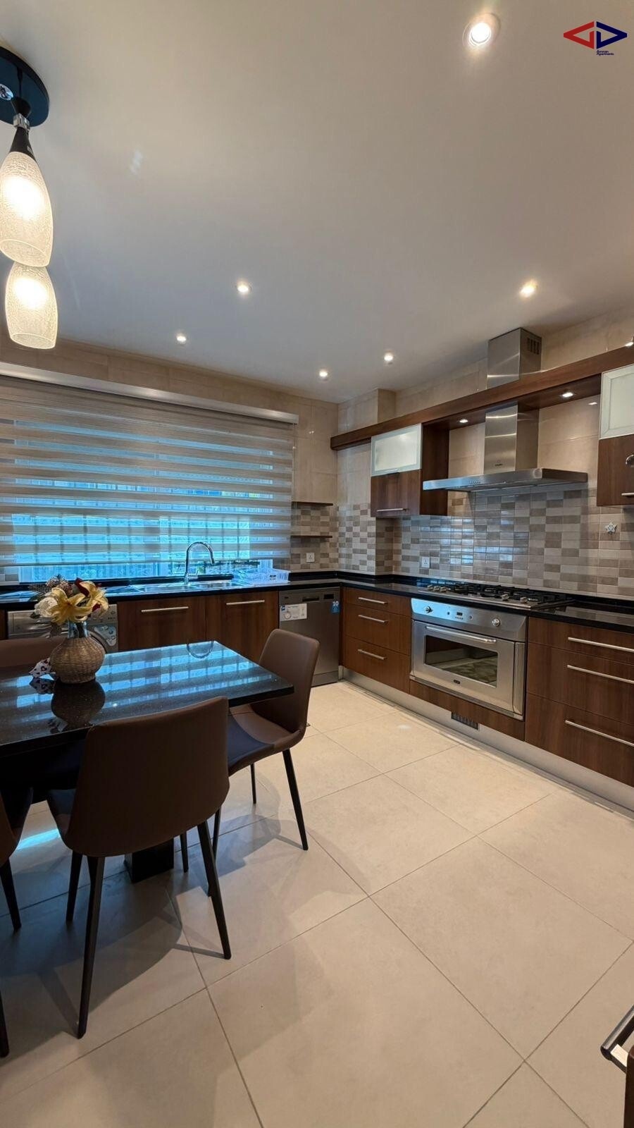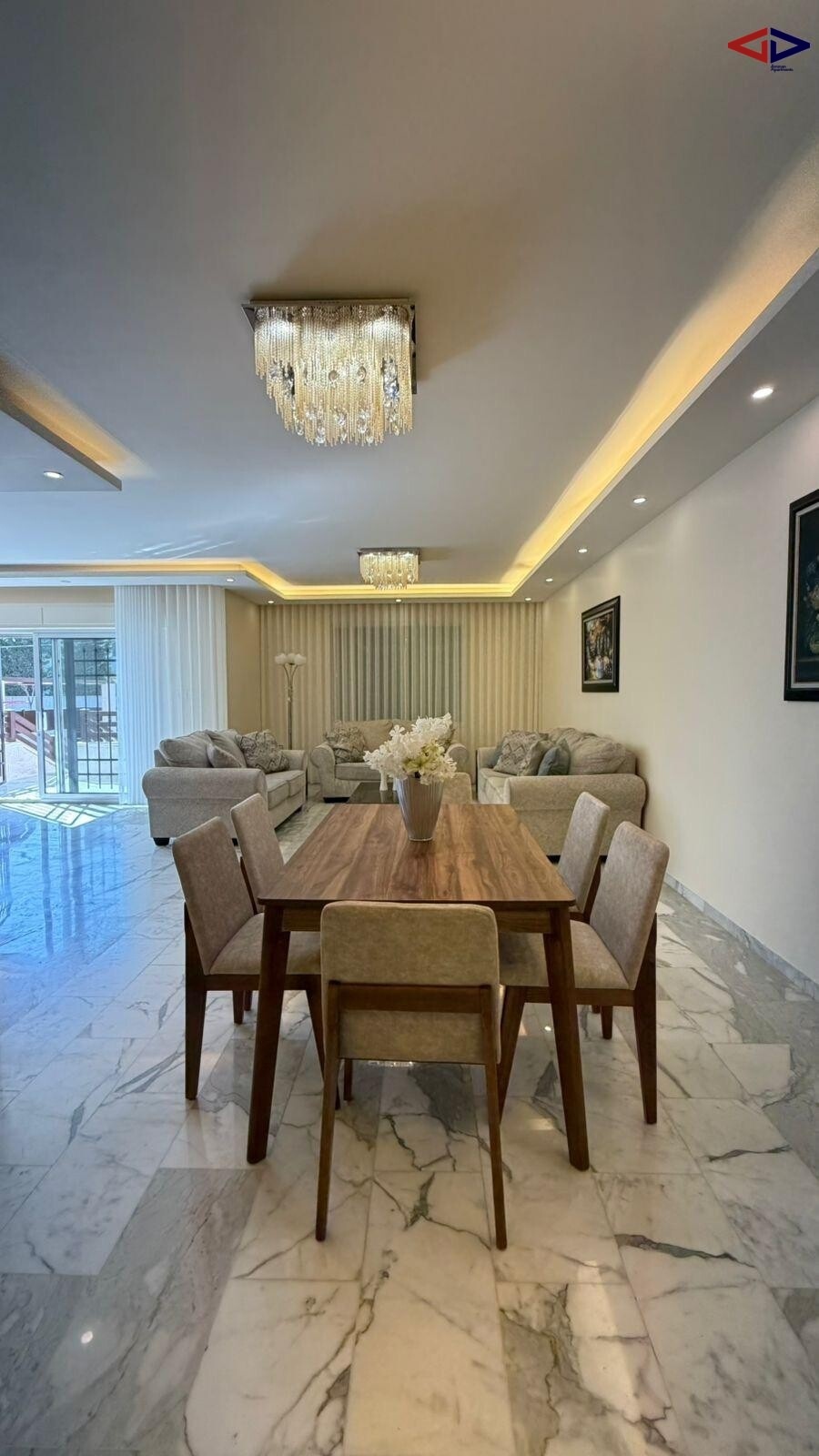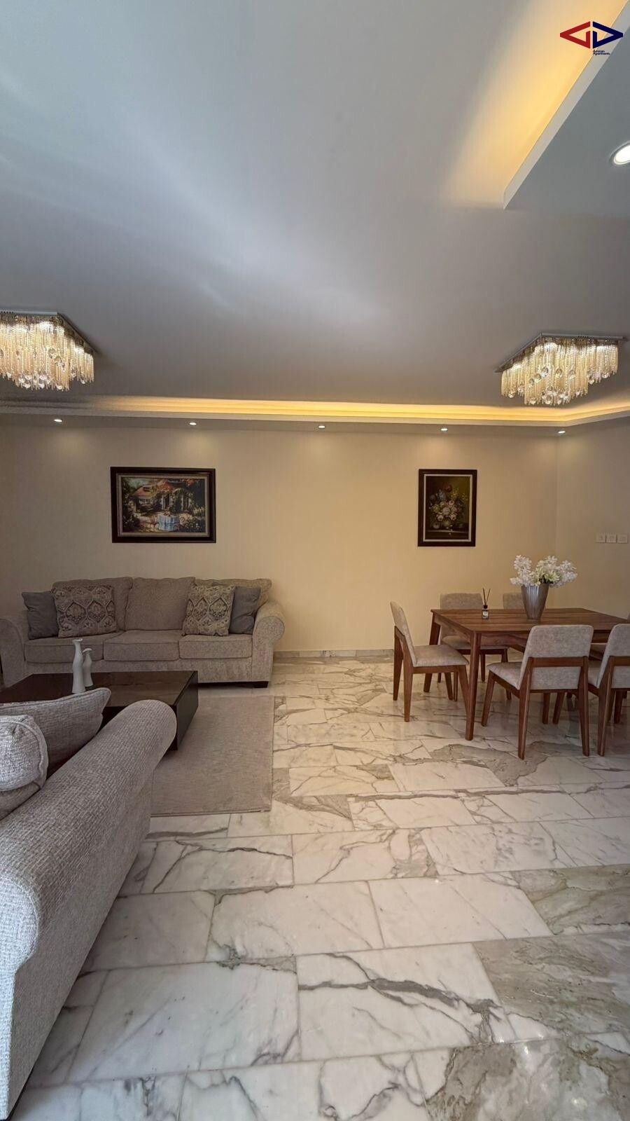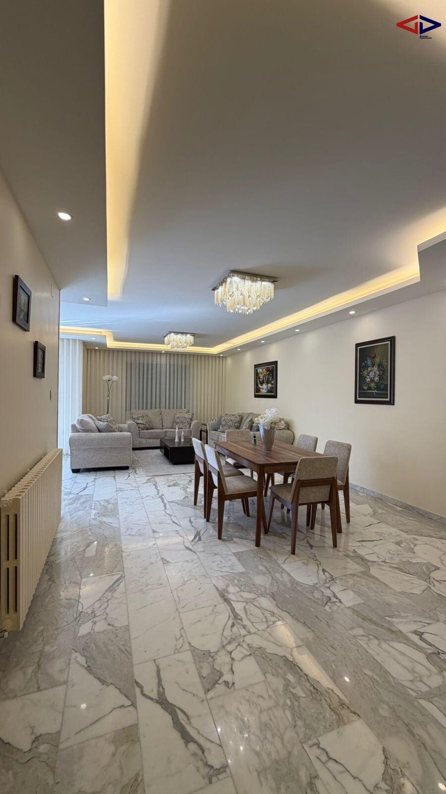 The apartment features a well-designed layout with expansive living and reception areas filled with natural light, creating a warm and inviting atmosphere ideal for both family life and entertaining guests.