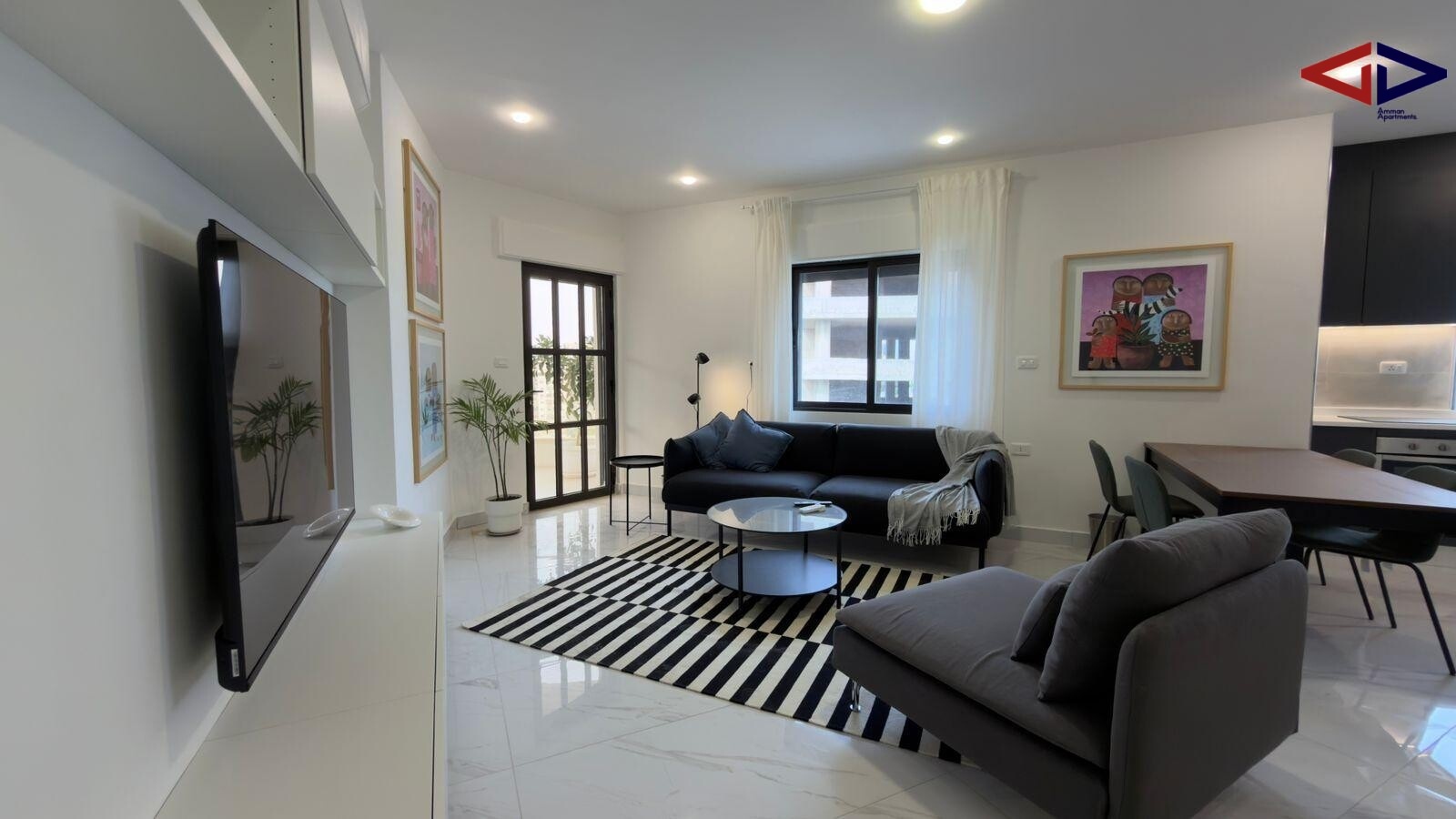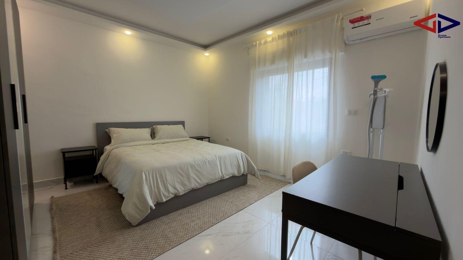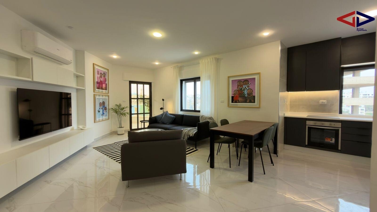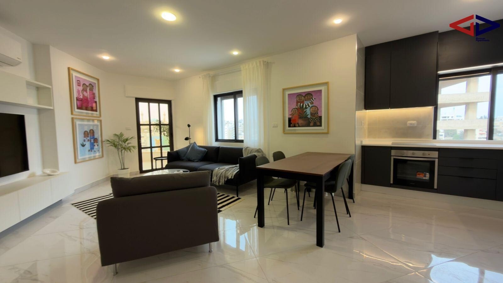 Modern 115 m² apartment for rent in Jabal Amman just steps from Second Circle. Features two master bedrooms, three bathrooms, a large private terrace, and an additional flexible room that can be used as an office or extra bedroom. Includes private parking with EV charging option and a digital security system. Located in a vibrant area surrounded by cafés, restaurants, and bars