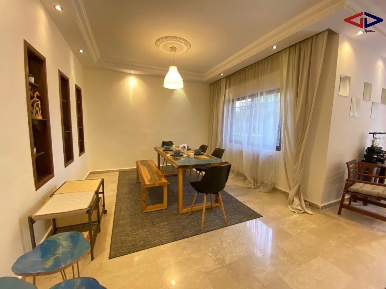 Discover this modern, fully furnished 3-bedroom apartment for rent in Deir Ghbar, one of Amman’s most prestigious residential areas. Spanning 187 sqm, this spacious home features a master bedroom, 3 bathrooms, elegant living and dining areas, a stylish salon, and a cozy fireplace—perfect for comfortable family living.