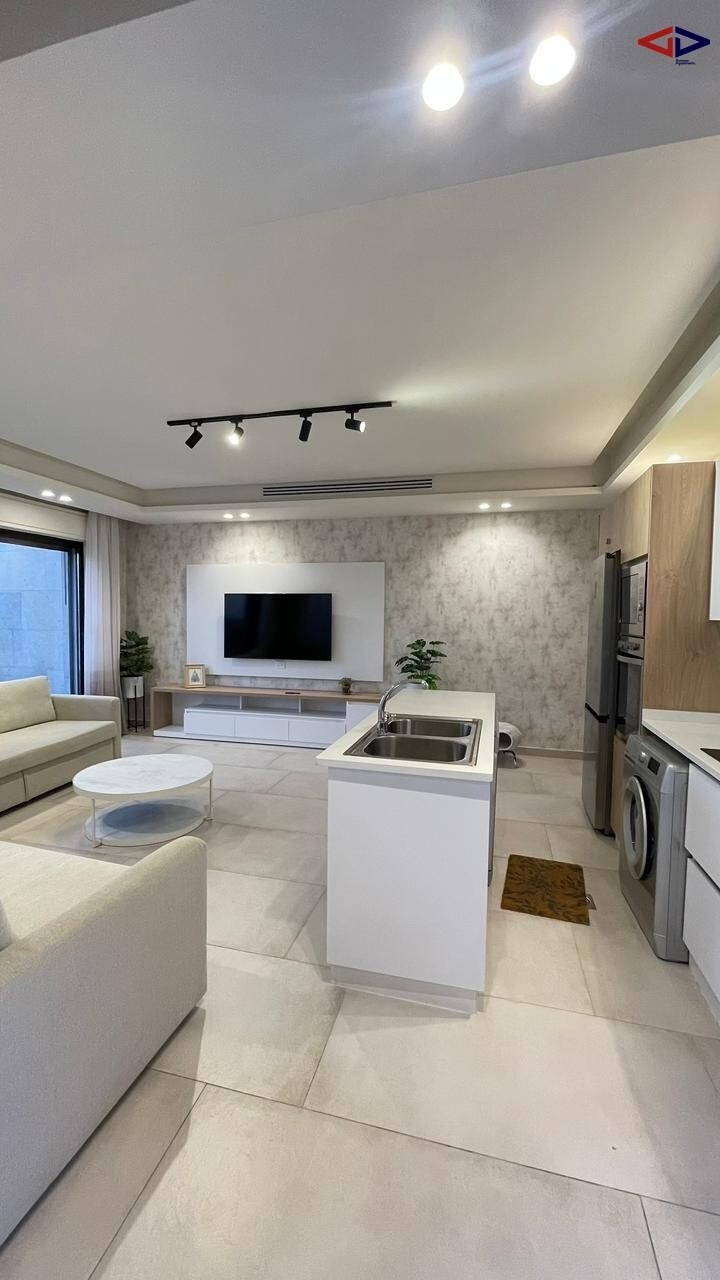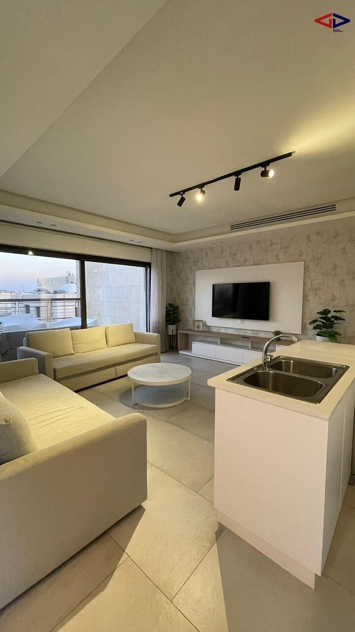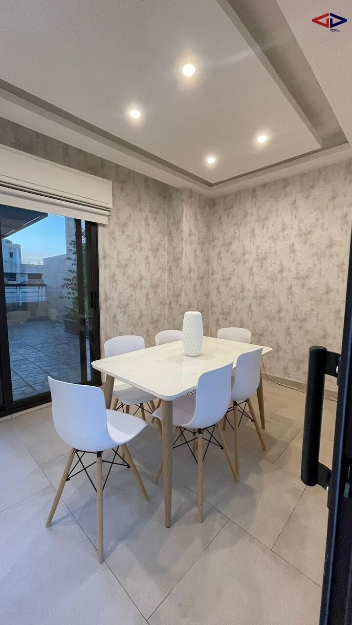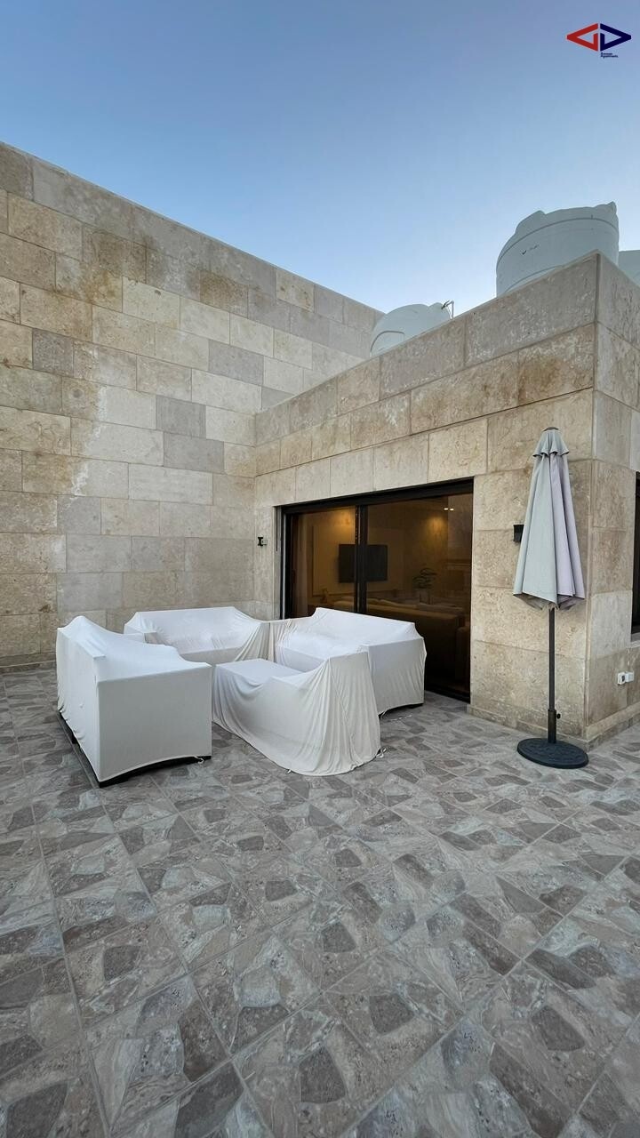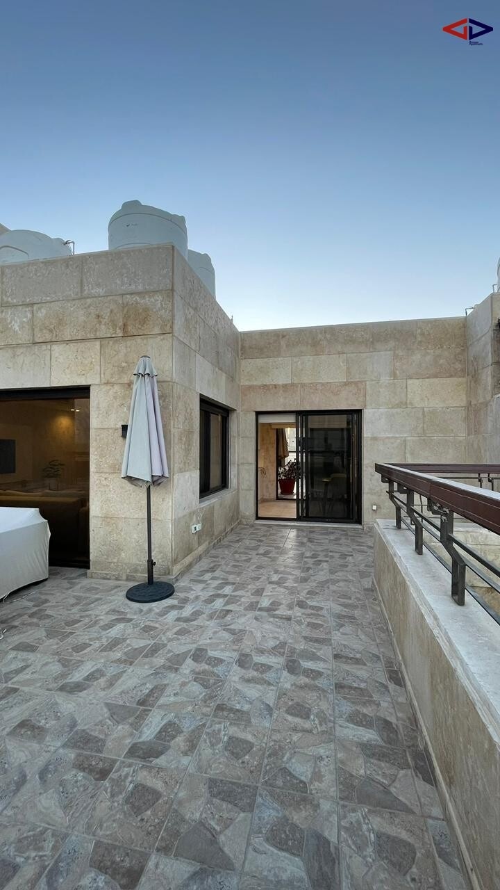 This rooftop apartment for rent in Abdoun offers 180 sqm of comfortable living space in a prime location. It features 2 bedrooms, 2 bathrooms, a bright living area, and a functional kitchen.