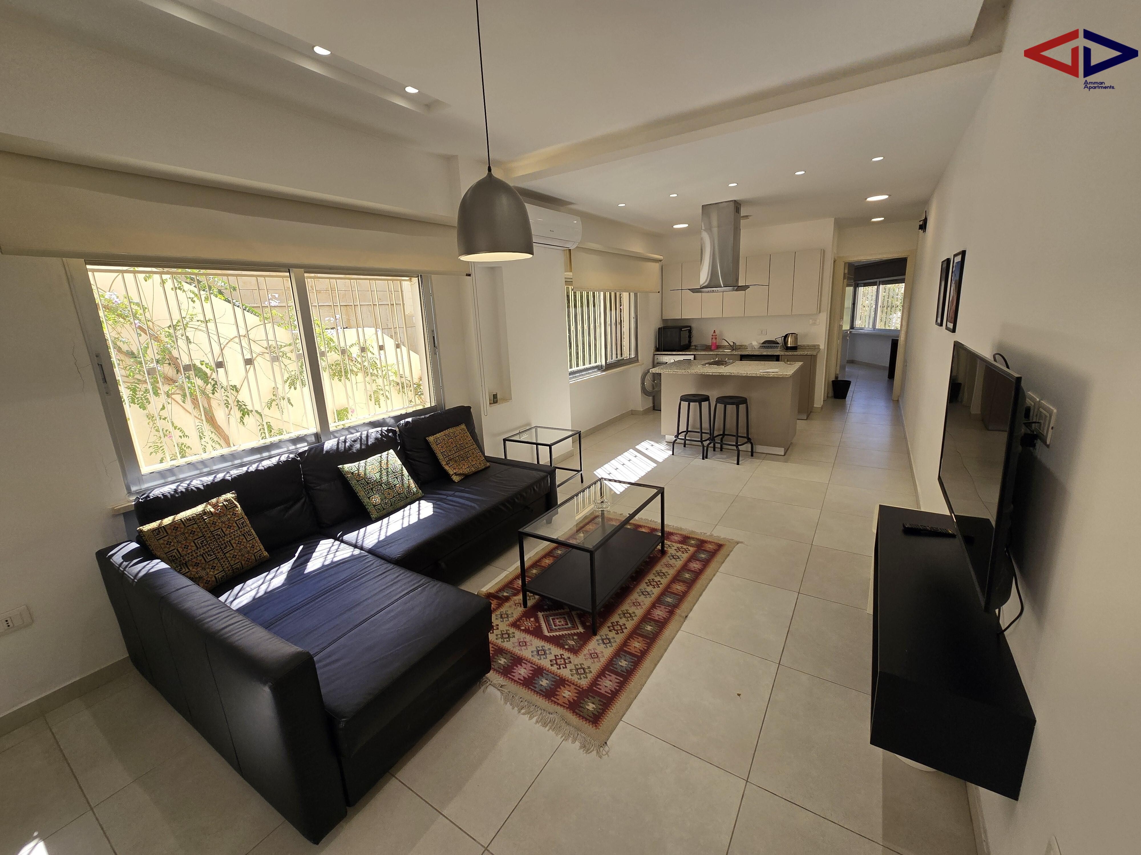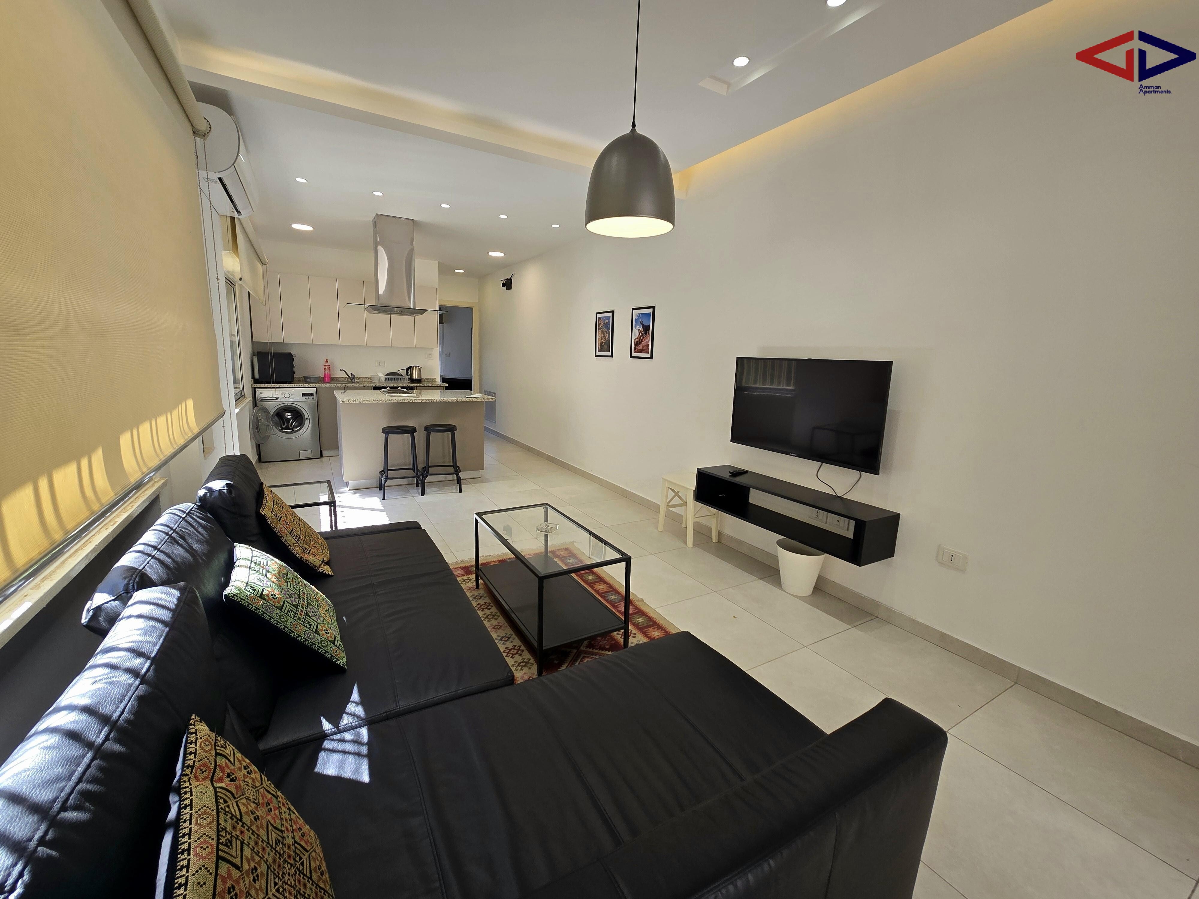 The apartment is a 5-minute drive from Abdali, Abdoun, Um Uthaina, and Old Jabal Amman, making it ideal for professionals seeking central, well-connected city living.