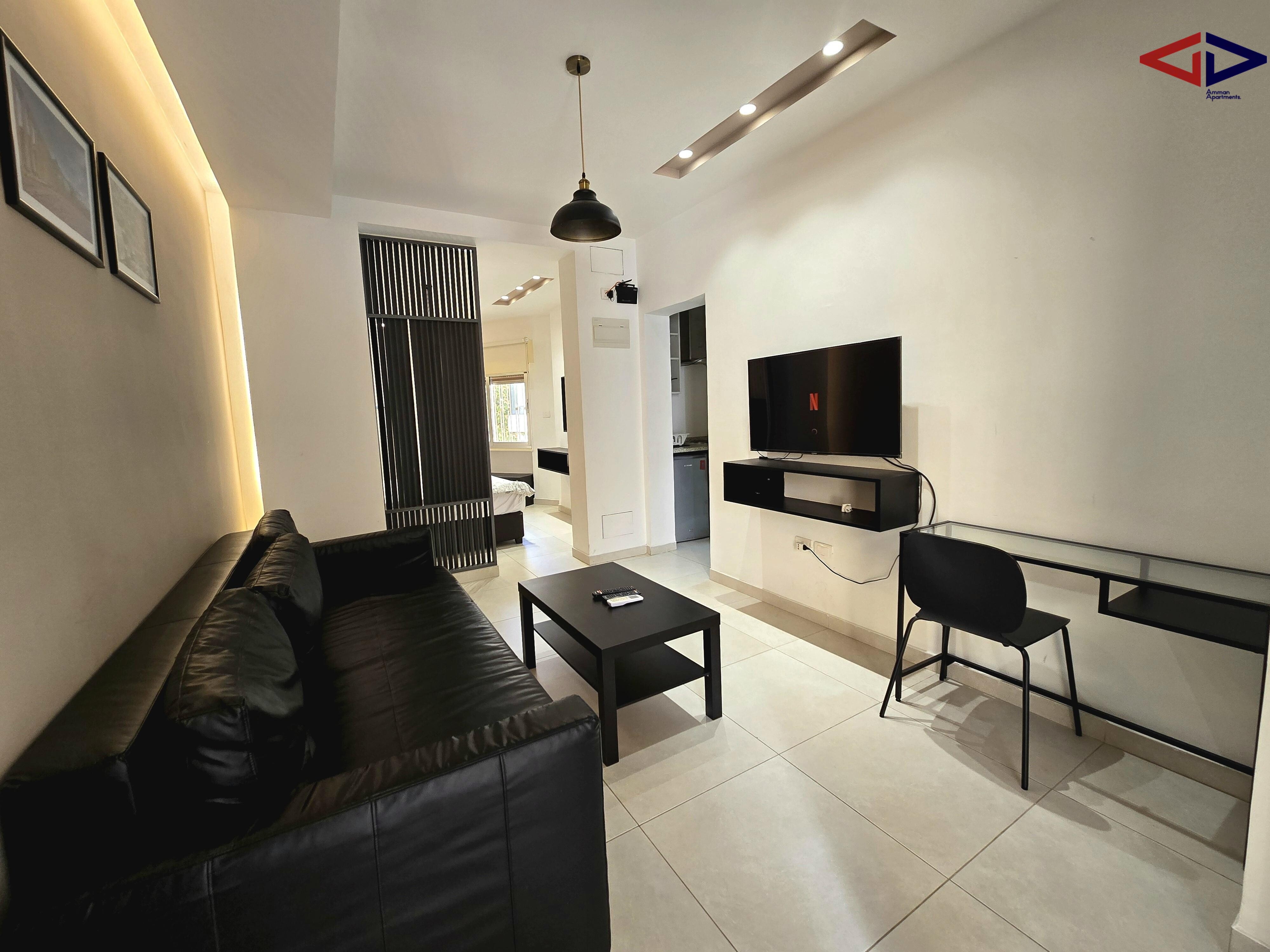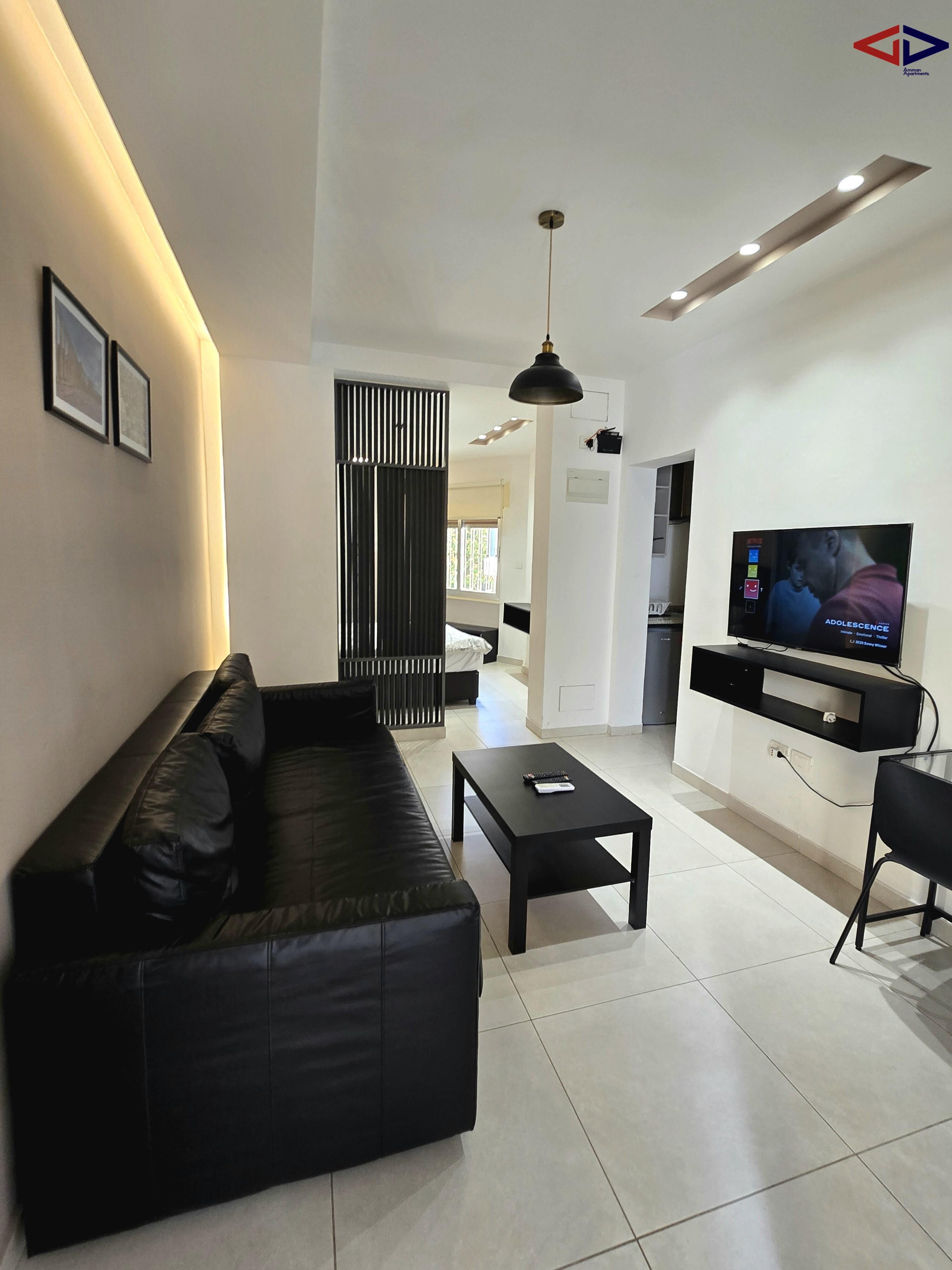 The suite is a 5-minute drive from Abdali, Abdoun, Um Uthaina, and Jabal Amman, making it ideal for professionals seeking a centrally located, well-managed, and comfortable city residence.